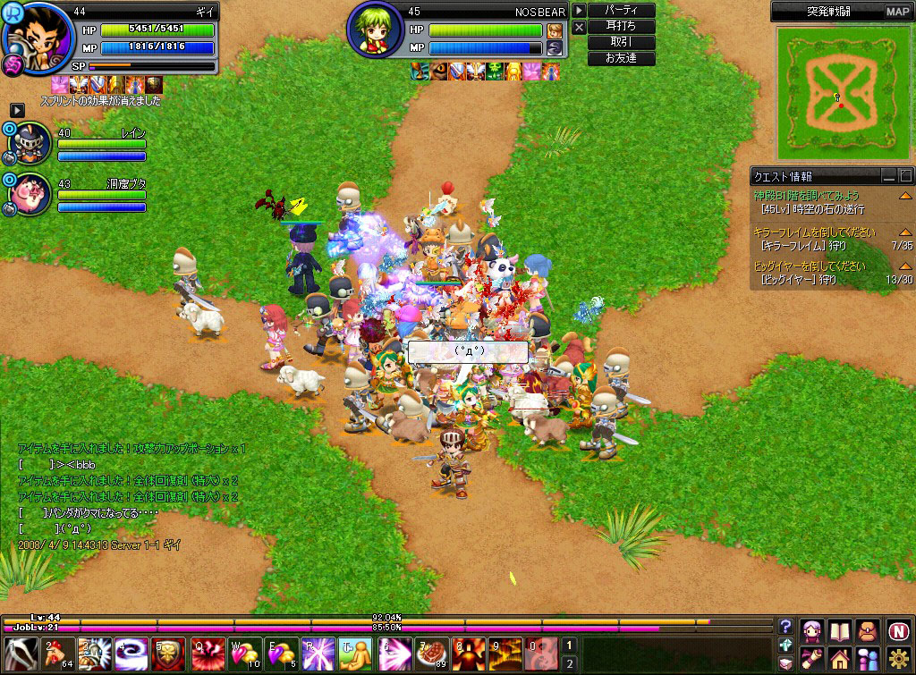 2026/04/08 00:35 コメント [PR] ×[PR]上記の広告は3ヶ月以上新規記事投稿のないブログに表示されています。新しい記事を書く事で広告が消えます。 2008/06/06 06:54 日常 0コメント ある日の突発 なにやら酷い言われようですな。 PR 2008/05/14 22:37 お絵かき等 0コメント 無題 相変わらず外見年齢と顔が定まらない・・・。 2008/05/04 01:44 お絵かき等 0コメント まだまだ続く・・・ 進んでいるのか後退しているのか。そして相変わらずの眉毛なし。 他に頑張る所があるだろうって言うぐらい髪の毛しか手を加えていない 2008/04/30 19:33 お絵かき等 0コメント 引き続き。 描いている最中を晒しても・・・とは思わないでもないが、 ぶっちゃけ書く事がなかったりする。 肌に影をいれて下書きの線を非表示にした所。 そして気付く。首細すぎ。 それにしても修正しないといけない所が多い(´・ω・`) 2008/04/29 05:54 お絵かき等 0コメント かなり効率悪い作業 肌のベースを塗って、髪を先に塗っている所。 普通に髪を塗るだけで数時間かかってたりする。 まぁ・・・作業していれば、そのうち終わる・・・はず。 2008/04/18 09:59 お絵かき等 0コメント やってることは何時もと変わらず。 暇つぶし用に絵チャを借りてこそこそ描いてみたり。 久しぶりのシルベ。版権もオリジナルも人間を描いていないよ、自分。 明けて19日プロバイダのメンテ・・・ 終わる時間がわからないのは痛い('A`) 2008/04/14 00:57 日常 0コメント めり込み中 突発で死去後のSS。 何処にめり込んでるんだ、自分。 2008/04/11 06:43 日常 0コメント 4次SP終了。 レチェン狩りの途中にて。マップの丸く囲んだ辺りに見えない壁発見。 うっかり引っかかってレチェンに ボコられること数回・・・('A`) そして・・・楽だと聞いてたセンティネルのほうが辛かったのはどういうことだろう?マップに入った瞬間フルボッコで連死した私を見てL氏爆笑。ヒドス('A`) そんなこんなで最後の時空・・・ センティネルに囲まれて涙目になりながら何とかクリア。 念願のダークガンナー.。゚+.ヾ(*´∀`*)ノ゚+.゚ 協力してくれた皆さん感謝です。 2008/04/09 17:39 日常 0コメント 2:30突発 たまたまサードキャラのレベル上げの為INしていたら突発の時間と重なったので行ってみる。 ・・・GM発見。2回目か3回目の沸き待ち中。 あの装備でこれだけダメージ・・・トナカイ帽をしていなかったのだろうか・・・? もしくは、偽POTを拾ったか・・・? んで、ボス前辺り。 あれ、黒い・・・。 工エエェェ(´д`)ェェエエ工 クマになってる・・・ 2008/04/09 07:27 日常 0コメント 4次SPクエ終盤 手伝ってもらってようやくクエスト終盤までこぎつける。 背景はきれいですな。背景は。 出てくる敵は・・・二度と見たくも戦いたくもないです・・・('A`) でもまだここに用がある・・・(ノ∀`)ハヤクオワラセタイワー おまけ。 彼曰く、ウマー(゚д゚)らしいです・・・